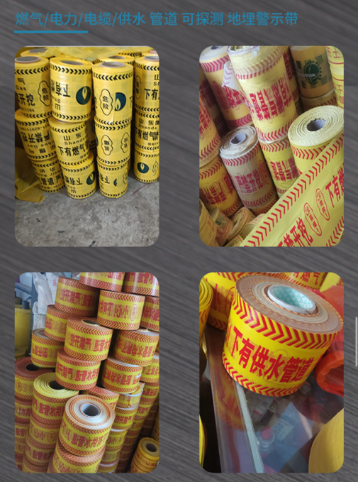 A 警示帶鋪設(shè)施工方便,施工與埋管同時(shí)進(jìn)行,埋覆與地下與管線(xiàn)中間,鋪設(shè)在管道上面30-50cm...